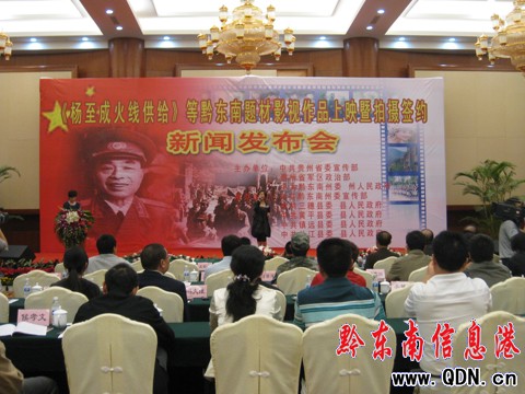 本港訊 (記者 周亮 攝影報(bào)道)9月27日,省委宣傳部、省軍區(qū)政治部、州委、州政府聯(lián)合在貴陽(yáng)舉行電影《楊至成火線供給》上映暨電視連續(xù)劇《鎮(zhèn)遠(yuǎn)•和平村》、大型電影《軒轅大帝》、電影《蟬之聲》拍攝簽約新聞發(fā)布會(huì)。