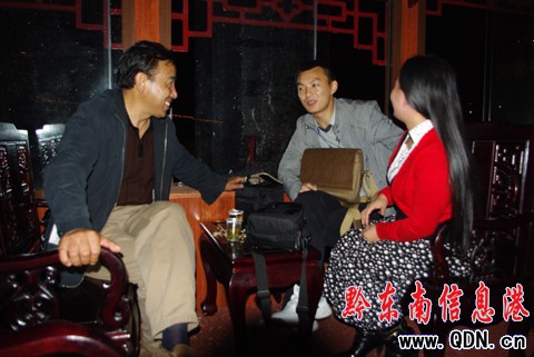 圖為黔東南信息港常務副總經理范紅波(中)與東北新聞網付總(左)進行交流