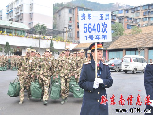 本港訊(盧秋米 李遠莉 攝影報道)12月15日,染上一層軍綠色的凱里火車站,軍歌嘹亮,鼓樂喧天,我州2009年新兵歡送大會在這里隆重舉行,熱烈歡送全州適齡應征青年光榮入伍。