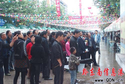 本港訊 (記者 廖強 攝影報道)為解決高校畢業(yè)生、進城農(nóng)民工就業(yè)困難,促進民營企業(yè)發(fā)展,發(fā)揮民營企業(yè)在就業(yè)工作中的重要作用。5月20日,凱里市地區(qū)民營企業(yè)現(xiàn)場招聘會在凱里市老二商場舉行。雖然天空下著蒙蒙細雨,但是依然沒能阻擋求職者的熱情,招聘現(xiàn)場十分火爆。