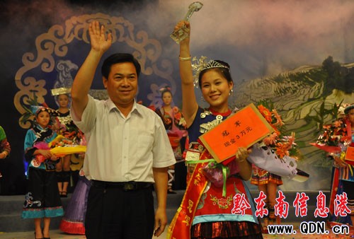 州委常委、州委宣傳部部長耿生茂為冠軍潘米頒獎