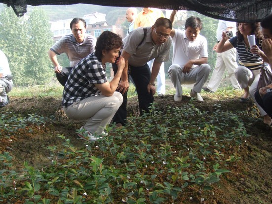 天柱油茶良種繁育重點縣,適宜本縣發展的油茶良種資源豐富,建有230畝采穗圃,穗條產量達400萬枝,可培育油茶芽砧嫁接苗1000萬株以上的生產能力,種苗培育已步入產業化發展進程,是省內重要的油茶良種生產與供應基地。2009年被省林業廳列為第一處油茶良種采穗圃和首批苗木定點生產單位。湯曉文副司長對天柱縣油茶良種建設取得的成就給予了充公的肯定,并強調一是要強化種苗質量,按照國家林業局《油茶種苗質量管理規定》的要求,嚴格執行油茶種苗生產和市場經營準入制度;二是要加強對定點育苗生產單位穗條采集源頭管理,把好嫁接穗條源頭關,確保苗木品質,保障種苗純度達98%,圃地嫁接苗純度達100%,出圃苗木合格率達98%以上;三是要苗木培育堅持“四定三清”,出圃苗木執行“四證一簽”制度,建立健全生產和經營檔案,由種苗生產單位承擔質量終身責任。