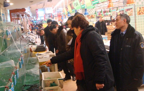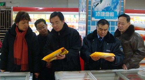 據(jù)黔東南政府網消息 2011年新春佳節(jié)即將來臨,為確保節(jié)日期間的食品安全,1月26日,州人民政府副州長劉曉春帶領州政府辦、州衛(wèi)生局、州工商局、州食品藥品監(jiān)督管理局、州衛(wèi)生監(jiān)督局等單位負責人及有關執(zhí)法人員,深入凱里市富萬家超市、新世紀超市等地對春節(jié)前的食品安全狀況進行檢查。