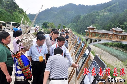 6月13日全國干線公路養護管理檢查組成員參觀省道308線凱里至雷山二級生態旅游公路圖片展。