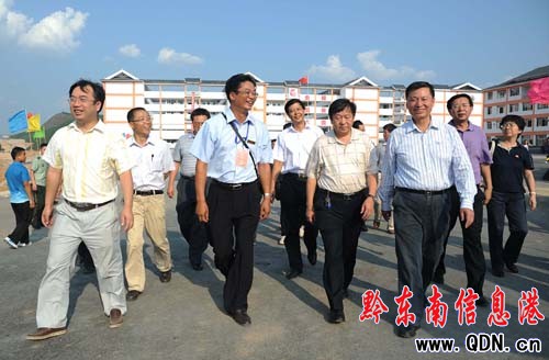 9月16日,國家發改委西部司司長秦玉才(前右一)在貴州省省委常委、副省長黃康生(前右二),黔東南州委副書記、州州長李飛躍(后右二),丹寨縣縣委書記古鵬(后中),丹寨縣縣委副書記、代理縣長侯美傳(后左一),丹寨縣副縣長龍永毅(左一)等的陪同下,在丹寨縣民族高級中學調研。