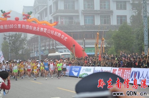 11月12日上午8點50分,2011中國•貴州黔東南超100公里跑國際挑戰賽第二賽段起跑儀式在雷山民族體育活動中心舉行。出席此次起跑儀式的主要領導有:州人民政府副州長、超100公里國際挑戰賽組委會委員劉曉春,雷山縣委常委、縣政協主席陳正鋒,雷山縣委副書記雷文艷,雷山縣委常委、縣人民政府常務副縣長張雙紅,雷山縣委常委、縣武裝部政委楊紹銀,雷山縣委常委、縣紀委書記楊勝軍,雷山縣委常委、縣委組織部部長石崇村,雷山縣委常委、縣委政法委書記、縣人民政府黨組成員巫貴生以及其他的縣四大班子領導。第二賽段雷山——寨瓦起跑儀式由雷山縣委常委、縣人民政府常務副縣長張雙紅主持并發表致辭。