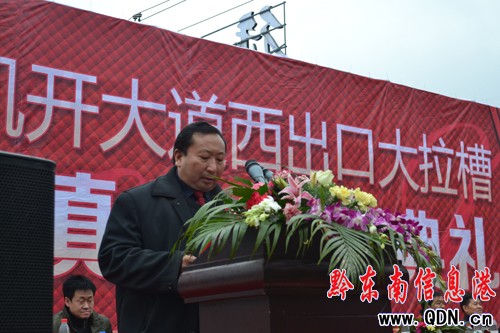市委常委、常務(wù)副市長涂剛在開工典禮上發(fā)表了致辭。他說,近年來,凱里市大力實施城鎮(zhèn)化帶動戰(zhàn)略,城市建設(shè)取得了突破性進(jìn)展。隨著城市建設(shè)步伐的加快,建設(shè)用地緊缺已成為制約城市發(fā)展的重要瓶頸。為突破項目用地瓶頸,按照州委、州政府的部署,市委、市政府啟動實施了凱開大道西出口大拉槽南側(cè)削峰填谷工程。該工程的順利實施,對緩解凱里市城市建設(shè)用地困難,加快城市擴(kuò)容步伐,都具有十分重要的意義。