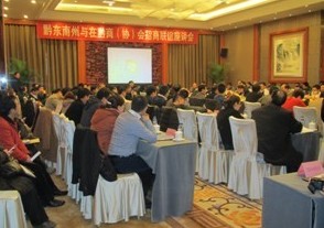 會議由黔東南州人民政府黨組成員、州招商辦主任唐有祥主持。州投資促進局肖俊局長對我州基本州情、資源稟賦、投資環境、產業園區、項目服務等方面作了宣傳和推介,凱里、爐碧、金鐘、洛貫、黔東、臺江6個省級經濟開發區和各縣市圍繞自身的優勢作了宣傳推介。在黔商(協)會代表就推動雙方合作與發展進行了交流發言。