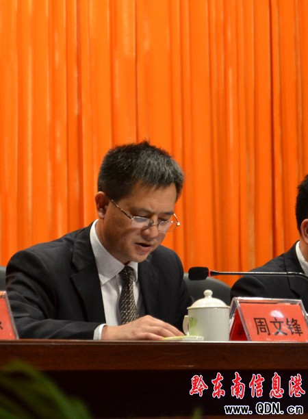 圖為市委副書記周文鋒在會(huì)上發(fā)表講話現(xiàn)場(chǎng)