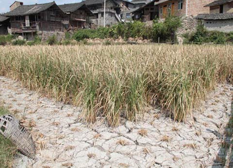 四川南部瀘州、宜賓、自貢等地旱情持續發展,田地開裂,再生稻不能正常萌發,旱地里的紅苕、大豆、花生等旱地作物有的枯萎,有的脫落,塘堰里的水干涸,塘底露出白泥。據統計,四川全省農作物受災面積達519萬畝,直接經濟損失超過12億元。農作物成災面積279萬畝,絕收33萬畝,預計損失糧食產量26萬噸。