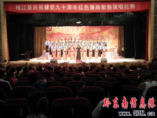 歌舞熱烈,禮贊歷史功績(jī);旗幟高揚(yáng),引領(lǐng)未來(lái)輝煌。榕江縣慶祝中國(guó)共產(chǎn)黨成立90周年紅色廉政歌詠比賽6月30日晚在該縣文化宮隆重舉行。該縣四大班子領(lǐng)導(dǎo)與廣大干部群眾一道共同慶賀中國(guó)共產(chǎn)黨九十華誕。