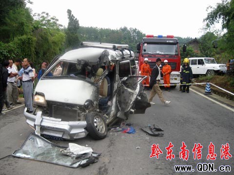 凱施公路上大客與面包車迎頭相撞 一人受傷(圖)