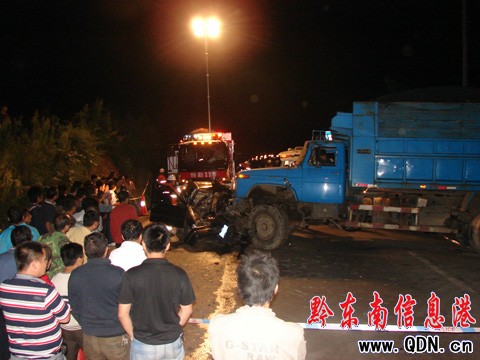 本港訊 (通訊員 蔣偉 攝影報道)8月30日晚21時許,凱(凱里)黃(黃平)公路龍場鎮狗場村路段發生交通事故,一輛轎車與煤車相撞,轎車車頭嚴重變形,其司機被困車內,生命垂危,經凱里市消防一中隊火速救援,被困司機被成功解救,無生命危險。