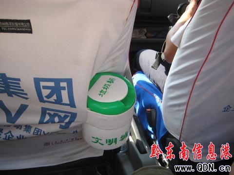 在祖國60華誕來臨之際,為了營造一個文明、衛生、和諧的凱里城市環境,凱里市客管局向每輛出租車免費發放一個綠色環保垃圾桶,杜絕了乘客因出租車內無處裝垃圾而亂丟車內或甩出車外的現象。