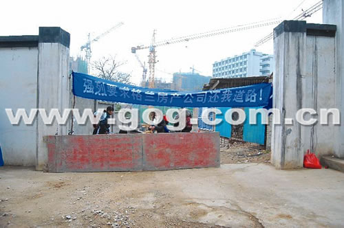 居民堵工地打橫幅——“強(qiáng)烈要求還我道路”