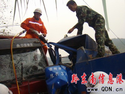 消防官兵趕到事故現(xiàn)場(chǎng)時(shí),都什鄉(xiāng)沙石廠路段有很多群眾站在行車(chē)道上圍觀,已經(jīng)嚴(yán)重造成交通堵塞,一輛重型貨車(chē)與一輛滿載石磚的川路車(chē)迎面相撞,現(xiàn)場(chǎng)一片狼藉,整個(gè)路面撒滿了玻璃碎片和車(chē)輛相撞后的脫落物。川路車(chē)駕駛員被嚴(yán)重變形的駕駛室死死的卡住,無(wú)法動(dòng)彈。