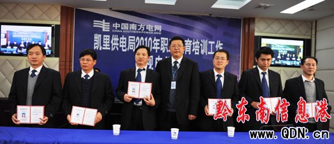 本港訊 (特約記者 姚瑤 孫煜)1月28日,筆者從貴州凱里供電局召開的2010年度教育培訓工作會上獲悉,該局7名同志受聘為凱里供電局第二批技術、技能專家,標志著該局打通專業人員的職業通道推向縱深。