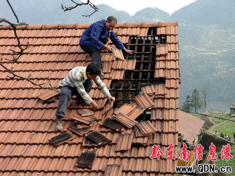 暴風“光臨”錦屏村莊 瓦片“失蹤”房屋受損
