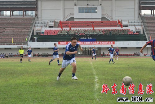 本港訊 (攝影 宋峰 記者 楊驥)為豐富廣大官兵的警營文化生活,培養官兵英勇頑強、精誠團結的戰斗作風,同時為黔東南州第七屆運動會選拔參賽隊員,近日,武警黔東南州支隊舉辦了首屆“衛士杯”足球比賽,得到了廣大官兵的一致好評。據悉,黔東南州第七屆運會將于今年七月中旬在凱里舉行。