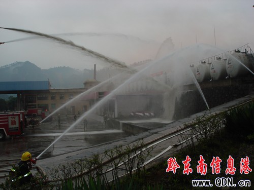 原來,這是一次演習。為增強消防官兵的實戰及與油庫人員協同作戰的能力,同時也為強化石化企業安全生產意識和安全消防能力,在全國“安全生產月”期間,黔東南綜合應急救援支隊在州石油公司凱里油庫組織各應急救援分隊舉行了此次石油化工火災撲救實戰演習。