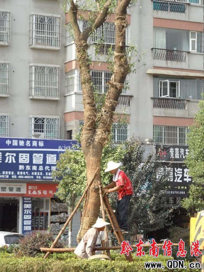 今天下午,記者在凱里市迎賓大道看見,幾名園林工人正頂著烈日熱火朝天的移植樹木。正在工作的園林工人告訴記者,為了進(jìn)一步提高自身形象,凱里市特地從浙江等地調(diào)運(yùn)黃山欒樹、銀杏樹、香樟樹和桂花樹等,移植到凱里市主干道綠化帶上,進(jìn)一步美化凱里市區(qū)的環(huán)境,為凱里市創(chuàng)建文明城市推波助瀾。(穆文碧)