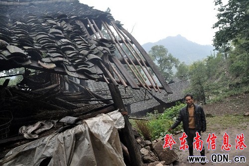 走了數(shù)百米,遇見(jiàn)了村莊,不少的石塊被隨意堆放在路邊,甚至在路坎下的陡坡面上,對(duì)民居構(gòu)成了極大的威脅!扒皫滋,一塊數(shù)百斤重的石頭滾下坡去,打壞了村民田某某家的豬圈,幸虧沒(méi)有傷及村民!币晃浑S行的村民介紹說(shuō),隨后,在他的帶領(lǐng)下,記者看到了被打壞的豬圈(如圖)。