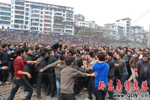 從江近萬人參加“東方橄欖球”搶花炮(圖)