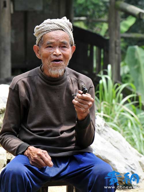 從江縣停洞鎮九日村,已經109歲高齡的余老懂老人,雖然行動不是很靈便,但說話還是很清楚。老人家屬說,余老懂老人飯量現在一直保持在兩碗。