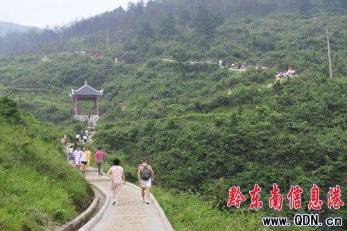 本港訊 (特約記者 陳沛亮 攝影報道)每周六至周日,凱里市區至市郊小高山5公里長的路途上,眾多市民自愿徒步登上1000多米的小高山,進行健身活動,以此提高自己的身體素質,樹立熱愛自然、保護環境意識,用實際行動倡導低碳生活,享受綠色健身的樂趣。根了解,為給市民登山營造良好環境,市政府投資500多萬元,于2009年12月建成小高山車道、人行登山步道等,成了凱里市民休閑和鍛煉的好去處。圖為  6月26日,參加活動的群眾在凱里市郊登山途中。