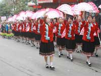 昨日,錦屏縣在城關(guān)體委球場舉行“喜迎十八大”健身舞比賽,共有25支來自全縣各鄉(xiāng)鎮(zhèn)的代表隊(duì)展參加比賽。老年人舞蹈慶“十八大”,表達(dá)她們在改革開放以來錦屏貧困鄉(xiāng)村巨變下農(nóng)村“老有所樂”,幸福、快樂的精神文化生活。下圖為健身舞代表隊(duì)在街上游行。(姜巨標(biāo))