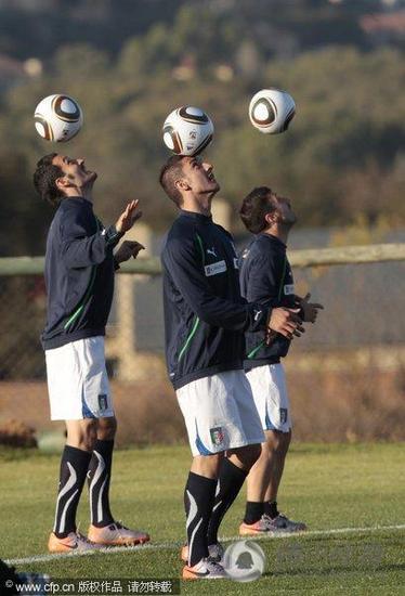 2010世界杯前瞻,2010年6月9日,在南非艾琳,衛冕冠軍意大利隊積極備戰,為了苦練頭球技術,全隊都在訓練頂球,訓練場上的意大利隊成“頭球隊”。