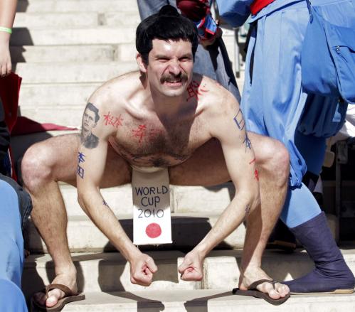 開場(chǎng)7分鐘,范佩西帶球突破被松井大輔推倒,在草皮上翻滾時(shí)踢中駒野友一頭部,駒野友一被抬到場(chǎng)邊接受治療,斯內(nèi)德左側(cè)距門25米處任意球高出。駒野友一戴上護(hù)頸回到場(chǎng)內(nèi)。第10分鐘,范德法特左路回敲,范布隆克霍斯特傳中,庫(kù)伊特前點(diǎn)距門7米處倒掛金鉤被中澤佑二頂出。1分鐘后,松井大輔左路直傳,長(zhǎng)友佑都禁區(qū)前沿抽射偏出遠(yuǎn)門柱。