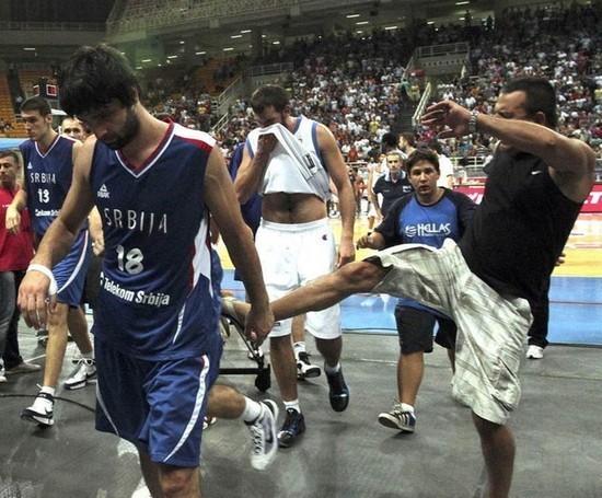 組圖:熱身賽希臘塞爾維亞血斗 比賽被迫終止