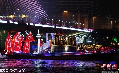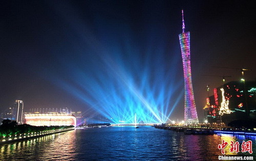 騰訊網(wǎng)訊 北京時間10月20日晚,亞運開幕式進行了首次綜合彩排,近萬名觀眾在絢麗燈光環(huán)繞下的海心沙小島上,一睹其驚艷、創(chuàng)意和動感?傊耆蚱屏藗鹘y(tǒng)的開幕式。圖為廣州海心沙小島的夜景。