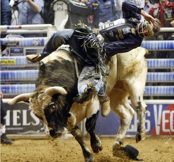 組圖:美國騎牛大賽驚險萬分 騎士斗膽公牛