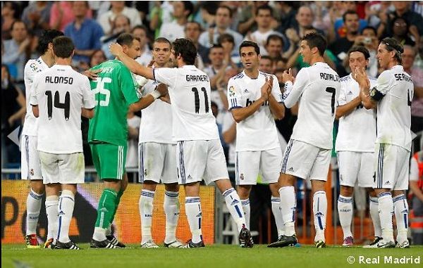 皇馬(4-4-2):25-杜德克(77’25-費爾南德斯)/4-拉莫斯、3-佩佩、18-阿爾比奧爾、17-阿貝羅亞/14-哈維-阿隆索、23-厄齊爾、8-卡卡(60’11-格拉內羅)、7-C羅/9-本澤馬(84’39’何塞魯)、6-阿德巴約