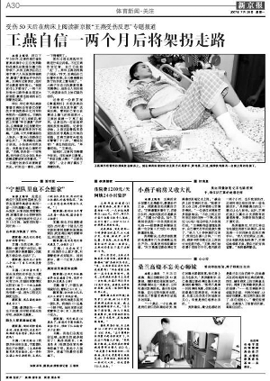 2007年7月29日,“小燕子”的病床上放著《賽道周刊》“王燕受傷反思”專題報道。