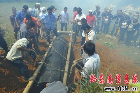 本港訊 (特約記者 陳沛亮 攝影報道)2010年7月25日,是凱里市三棵樹鎮賞郎村下寨組一苗族老人安葬的日子, 當地苗族同胞按照按照古老的習俗,為村里的一位苗族老人舉行葬禮。場面壯觀、熱鬧。