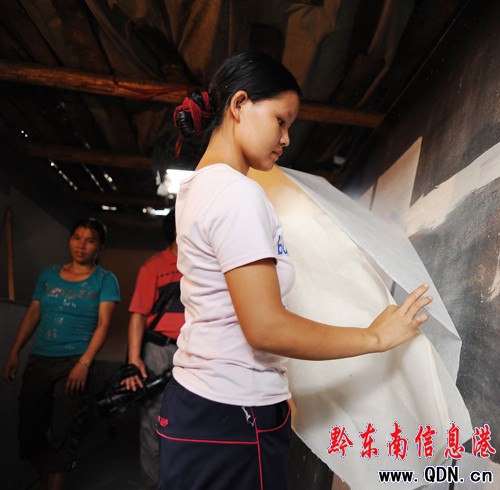 本港訊 (特約記者 黃曉海 攝影報道)2010年8月24日,丹寨縣南皋鄉石橋村的苗族村民利用傳統節日“七月半”開展古法造紙技藝比賽活動。