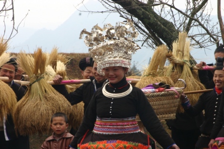 9日—10日,蘆笙舞比賽、銅鼓舞比賽、斗牛、服飾展演比賽、民歌比賽、苗族婚俗等活動相繼進行,為前來采風旅游的客人和當?shù)厝罕姺钌狭司实墓?jié)目。尤其是9日晚上的千人錦雞盛裝篝火晚會,幾千人圍著篝火跳起了銅鼓舞和蘆笙舞,場面巨大,氣氛熱烈,把錦雞文化之鄉(xiāng)苗族人民好歌愛舞的性格展現(xiàn)得酣暢淋漓。香港有線電視臺對活動進行了全面的拍攝。來自美國、英國的外賓和來自全國各地的游客奔波各比賽活動場,興致勃勃,樂不可支。