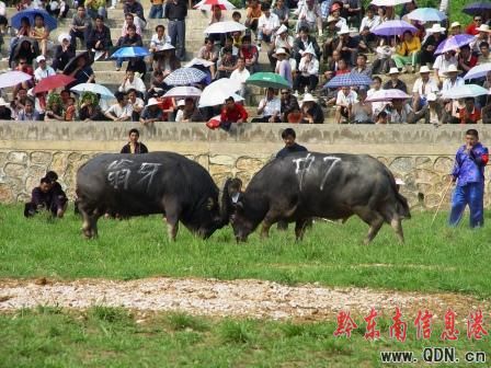 在一年一度的五一國際勞動節(jié)到來之際,黔東南人民以其獨特而古老的斗牛方式來歡度勞動節(jié),迎接6月11日奧運圣火的到來。據(jù)主辦方介紹,本屆斗牛大賽是黔東南州有史以來規(guī)模最大、參與牛數(shù)最多、獎金最高、跨地域參賽牛最廣的一次斗牛盛會,旨在打造“東方斗牛”品牌形象。據(jù)悉,開賽當天有26頭中量級水牯牛參與角逐。在現(xiàn)場記者看到,觀眾如潮、長號震耳、鼓聲震天,人們的熱情隨著斗牛的愈加激烈而一浪高過一浪。