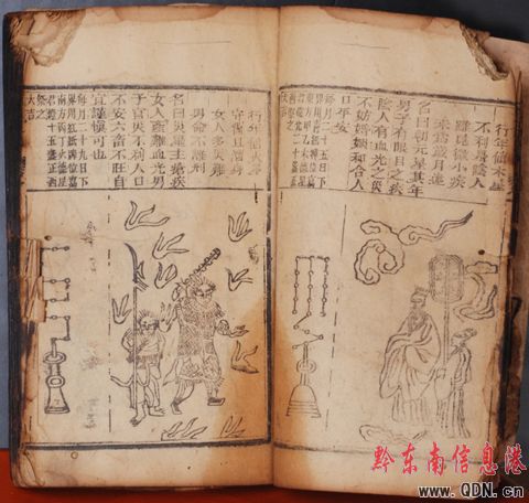 這本古書已有一百多年的歷史,局部有蟲子咬壞外,但里面完好無損,圖案、文字清晰,在當今屬于罕見之物。
