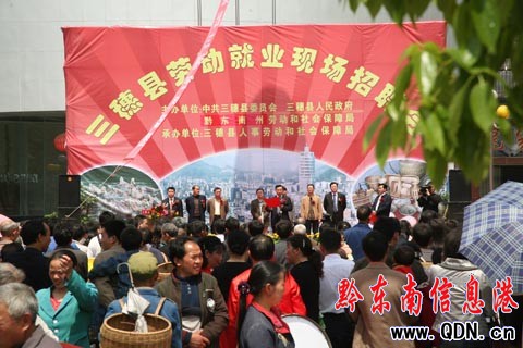 本港訊 (萬祖德 攝影報道)3月19日,三穗縣召開“農(nóng)民工就業(yè)工作表彰大會”,表彰9個先進(jìn)集體、14名優(yōu)秀農(nóng)民工。并承辦 “三穗縣勞動就業(yè)現(xiàn)場招聘會”,為該縣16000名返鄉(xiāng)農(nóng)民工構(gòu)筑就業(yè)大平臺。此次招聘會有19家企業(yè)參加現(xiàn)場招聘,招聘崗位職數(shù)1195個,近1000名農(nóng)民工前來咨詢選擇適合自己的崗位,并現(xiàn)場與招聘方簽訂勞動合同。