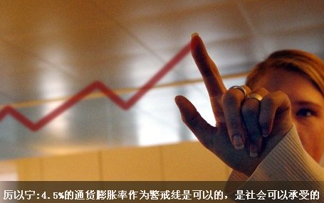 厲以寧表示,如果國際油價、鐵礦石價格和糧食價格繼續上漲,輸入型通貨膨脹將不可避免。3%的通貨膨脹率警戒線是適用于西方的,而中國近期來看,維持9%的經濟增長率是可能的。如果9%的經濟增長率還把3%的通貨膨脹率作為一個警戒線,會給經濟帶來很多問題。4.5%的通貨膨脹率作為警戒線是可以的,是社會可以承受的。