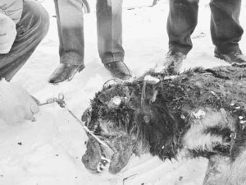 15時30分左右,小院傳出了3聲沉悶的槍聲。張明寵養的兩條愛犬應聲倒地:“妞妞”被打了兩槍,“黑貝”被打了一槍,均被當場擊斃。確認狗死亡后,民警進一步對現場進行了勘察。經警方確定,張明已經死亡,其頭部和脖子上的皮肉均是被藏獒“妞妞”啃食的。