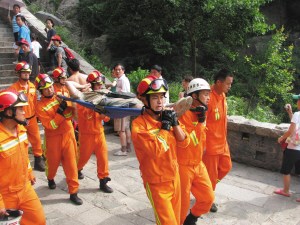 幾經(jīng)周折后,他們終于在懸崖半腰發(fā)現(xiàn)了小程。此時,他的胳膊和腿上到處都是劃傷,由于已經(jīng)過去了12天,受傷處已經(jīng)都結(jié)了血痂。最后,救援官兵將傷者抬上擔(dān)架,送往早已等候在中天門的120急救車上,待到山下接受進(jìn)一步檢查和治療。