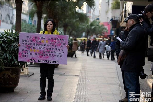 在溫州街頭,一女子拿著自己的廣告牌,拍賣自己的初夜權(quán),真是“大膽之舉”,女孩子的矜持在這里黯然失色。