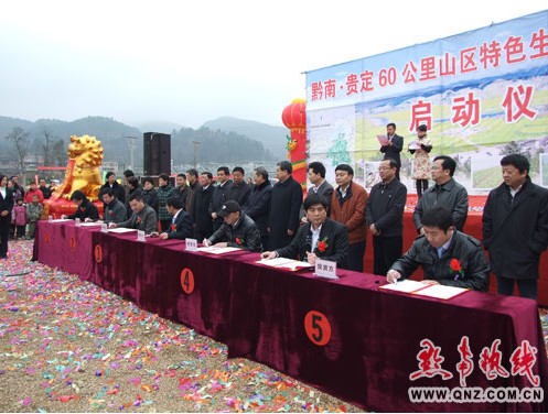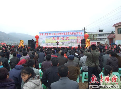3月3日上午,黔南.貴定60公里山區特色生態高效農業開發區在貴定縣定南鄉正式啟動,這標志著黔南州生態高效農業發展邁上了一個新的臺階。國家農業部科技發展中心主任段武德,國家農業部科教司處長張景林、副處長趙耀輝、紀紹勤;省人大常委會原副主任楊光林、步智信,州領導黃家培、李月成、楊云、符曉鋼、王勇、黎俊敏等出席啟動儀式。啟動儀式由副州長王勇主持。啟動儀式上,進行了隆重而熱烈的 “黔南﹒貴定60公里山區特色生態高效農業開發區管委會” 揭牌儀式和“黔南﹒貴定60公里山區特色生態高效農業開發區山區特色生態育苗中心”授牌儀式,現場簽約種養和加工項目15個,簽約金額達6.8億元。啟動儀式由黔南州副州長王勇主持。