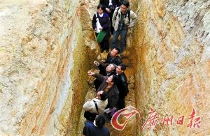 昨日,專家們到廣從斷裂帶西淋崗滑坡現(xiàn)場考察。記者駱昌威 攝