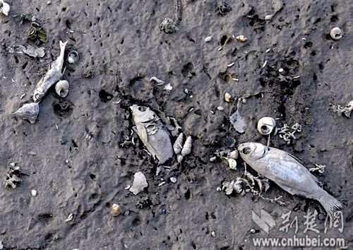 圖為:湖底死去的魚